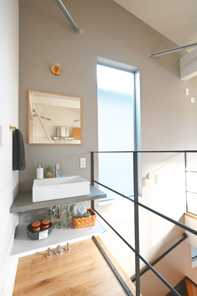 洗面は、LDKの一部としシンプルなデザインのものを採用。LDKを演出しています。