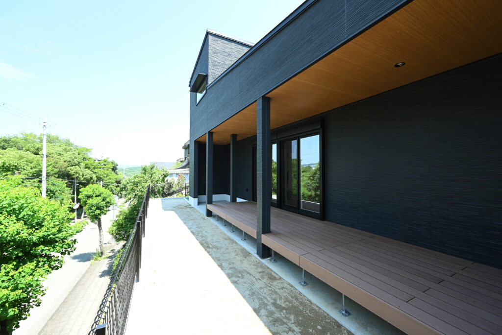 Tags: #アイランドキッチン #ウッドデッキ #バリアフリー #ファミリークローゼット #レンジフード不要 #勾配天井 #天井の高い浴室 #造作家具 #造作洗面